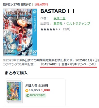 【Amebaマンガ】で『BASTARD!! 暗黒の破壊神』(萩原一至、既刊二十七巻)