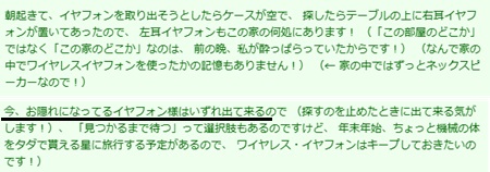 去年の十二月に行方不明になってた bluetooth イヤフォンの片耳、
