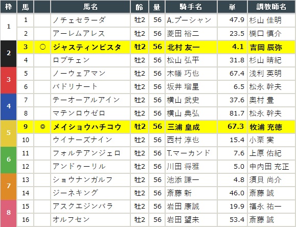 新ひだか町産(=日高の馬)のジャスティンビスタ